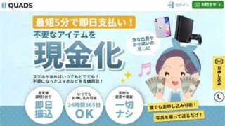 QUADS(クワッズ)とは、不要ににったスマホやゲーム機などの郵送買取の他、先払い買取による即日現金化サービスを提供している先払い買取業者です。買取申込時には、商品の状態を送るだけの簡単な申し込み作業のみで、即日現金を手にする事ができます。...